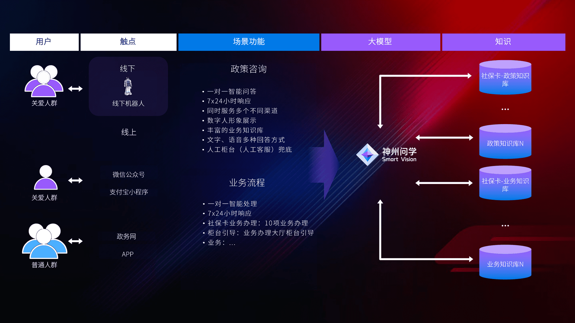 • 线上线下全覆盖:线上提供微信公众号、、支付宝小程序、、、、政务网、、app多种渠道,,与线下机器人形成完整服务体系。。